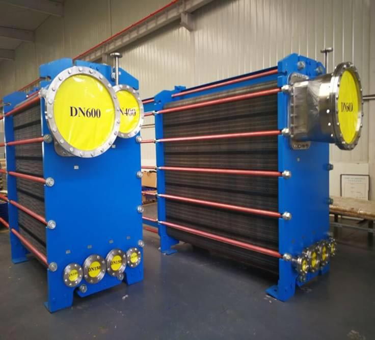 (5) 操作灵活,设备余量大,可以根据需要增加或减少板片的数量以改变其加热面积,或改变工作条件,设备规格的幅度很大,每片换热片的尺寸,小的可到0.5m2 ,大的可达1.3m2,每台设备的换热面积可在1~1000m2之间;